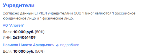 Что интересно: в том же самом ООО «Нино» мы видим в числе владельцев не только сына Аркадия Новикова Никиту, но и некое АО «Апогей», которое скрывает своих бенефициаров, но по цепочка следов ведет...в Кабардино-Балкарию.