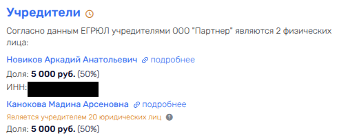 И наконец, Мадина Арсеновна Канокова вместе с Аркадием Новиковым сообща владеют московским ООО «Партнер», как раз связанным с АО «Апогей».