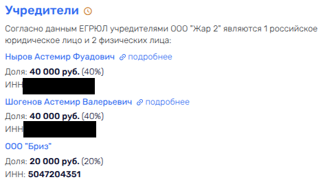 Покупателями ООО оказались родственник экс-замдиректора правительственного департамента Валерий Шогенов Астемир Валерьевич Шогенов и некий Астемир Ныров. Оба покупателя являются совладельцами ресторанного ООО «Жар 2» в Адыгее, где их партнёром выступает ООО «Бриз». Бенефициарами этого «Бриза» значатся депутат Госдумы Дмитрий Саблин и Алла Налча (Саблина).