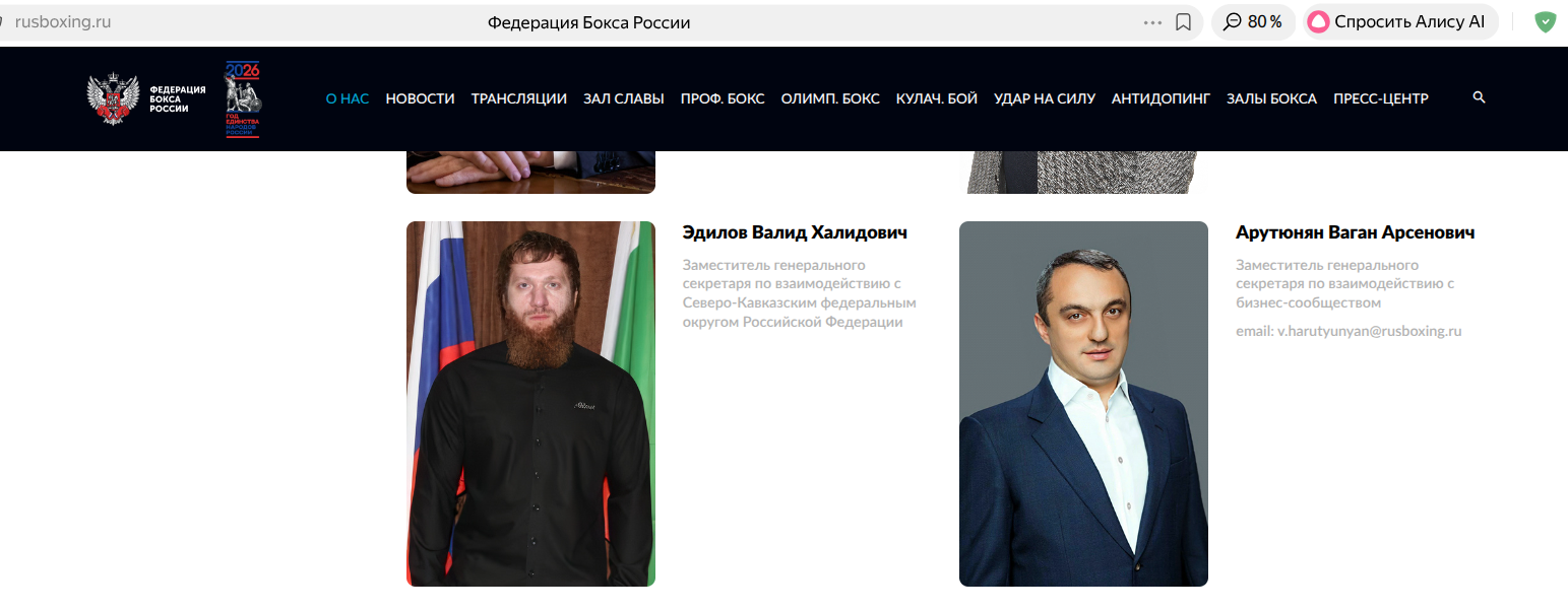 Так, Кремлёв долгие годы был секретарем Федерации бокса России, Рубежный же является высшим наблюдателем федерации. И, к слову, Арутюнян в той же федерации - замгенсекретаря по взаимодействию с бизнес-сообществом. Интересное совпадение, не так ли?