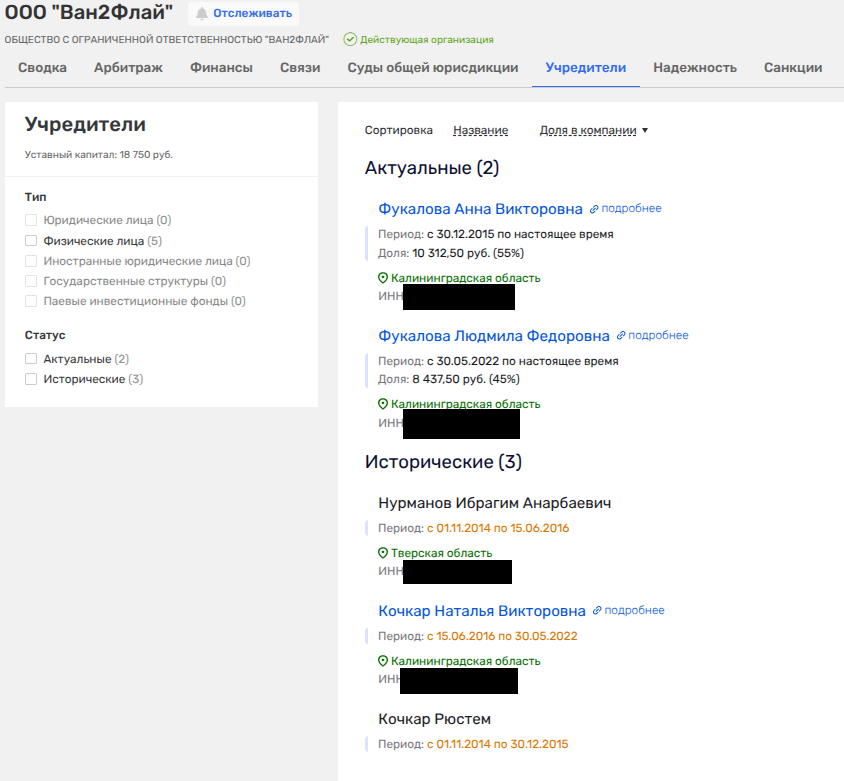 Именно РВБ распахивает роток на ООО «Ван2флай», которое, в свою очередь, принадлежит Анне и Людмиле Фукаловым - родственницам бывшего совладельца «Ван2флай» Натальи Кочкар, супруги Серхата Кочкара — бенефициара авиакомпании и брата владельца Аnex Tour Нешета Кочкара. В числе владельцев ООО «Ван2флай» ранее был и Рюстем Кочкар - совладелец одного из юрлиц Аnex Tour в России.