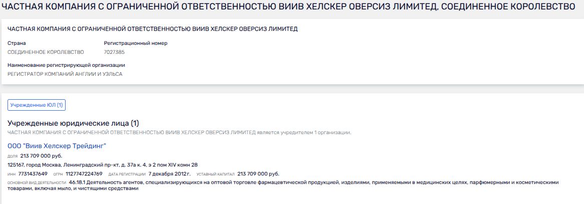 АО «ГлаксоСмитКляйн Трейдинг» далеко не единственное юрлицо этой паутины, связанное с российским рынком.