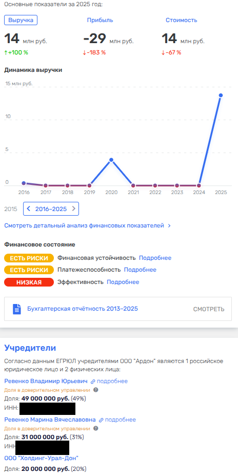 По итогам 2025 года общий убыток всех компаний составил 881 млн рублей, но, памятуя о связях Ревенко с кипрским юрлицом, возникает вопрос, а не туда ли уплыли эти капиталы? Ведь выручка составляла почти 1,7 млрд рублей. Где деньги, Вов?