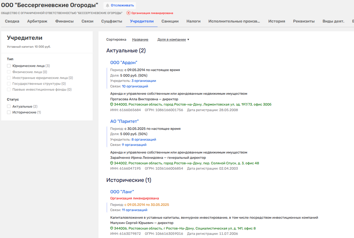Так, например, ООО «Ардон» совместно с ООО «Ланг» владели компанией «Бессергеневские Огороды». Среди владельцев ООО «Ланг» фигурировал и Али Узденов. И это лишь малая часть связей этих двоих. Занятное совпадение не так ли?