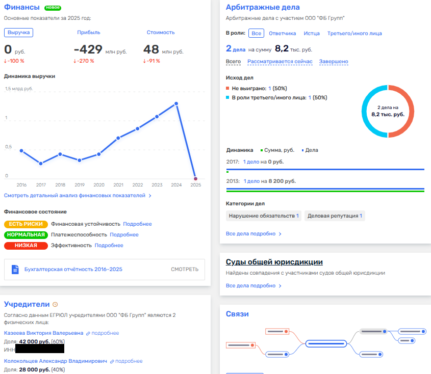 Но странности относительно «ФБ Групп» на этом не заканчиваются.