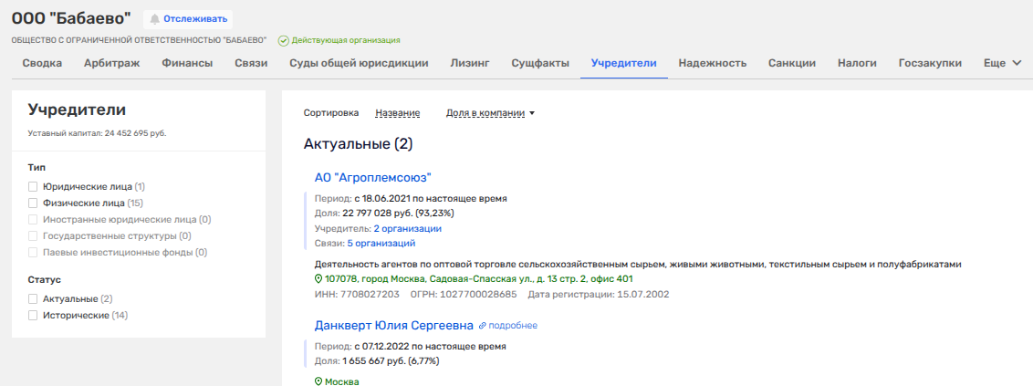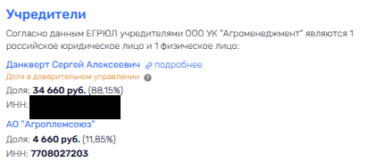Формально активы на сегодня записаны на Юлию Сергеевну Данкверт, которая и входит в совет директоров «Агроплемсоюза», являясь и главой совета директоров его «дочки» - ЗАО «Агрофирма Нива» в подмосковном Дзержинском.