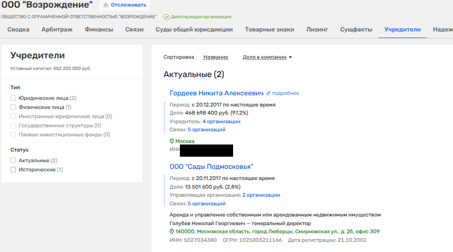 Кроме того, обнаружилась связь и с сыном экс-министра - Никитой Гордеевым. Его следы обнаружились через Юрия Мосолова - директора АО «Племзавод Ульянино» в Московской области, чьим владельцем фигурировало АО «Агроплемсоюз».