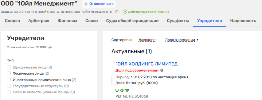 Также налоговые долги есть у такой дочки ПНГ, как ООО «Руфьеганнефтегаз», у которой 0 сотрудников, 12 млн рублей убытка при выручке 337 млн рублей и 114 млн рублей налогового долга, а также в анамнезе кипрская кубышка - бывший владелец - некое УРОКО ЛТД. Наследила в других дочерних фирмах ПНГ и такая кипрская фирма, как БЕНЕЛЛИ ЛИМИТЕД,