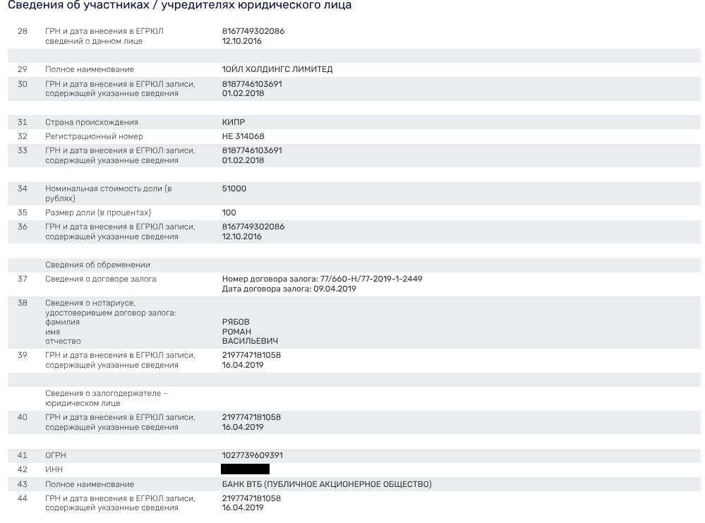 Принадлежит ООО - кипрской 1OIL HOLDINGS LIMITED, чья доля как раз таки и заложена ВТБ.