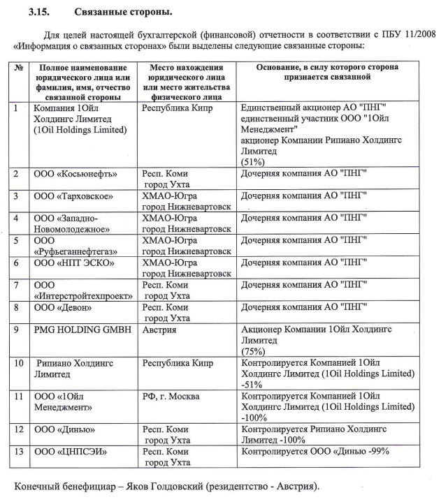 ООО ЦНПСЭИ, где долю имеет дочернее ПНГ ООО «Динью» и кипрское РИПИАНО ХОЛДИНГ ЛИМИТЕД, чьим акционером выступает 1OIL HOLDINGS LIMITED, задолжало в бюджет 688 млн рублей. При этом при выручке 1,9 млрд рублей фирма демонстрировала в отчетах чистый убыток - 76 млн рублей. А не поискать ли те капиталы на кипрских счетах?