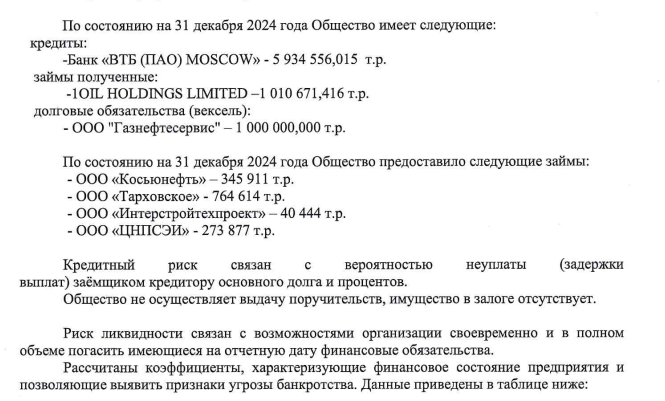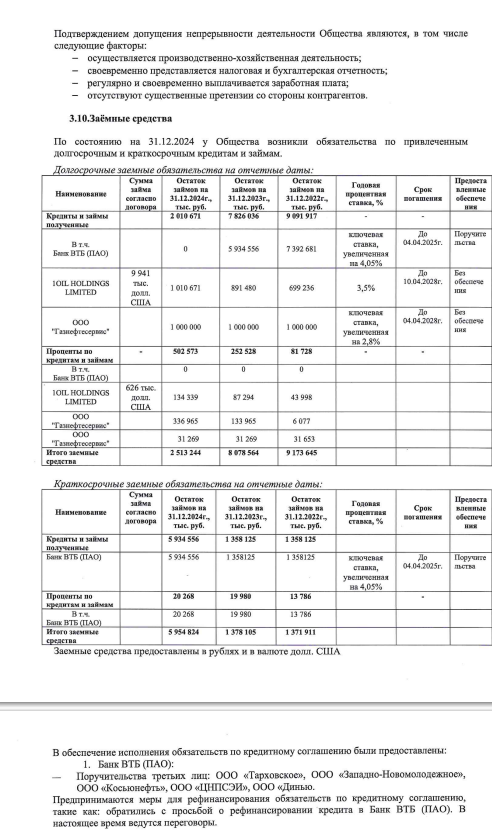 Тогда же, в 2024 году, судя по отчету, велись переговоры о реструктуризации долгов перед ВТБ.