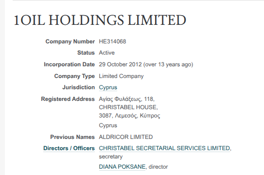 Кипрской 1OIL HOLDINGS LIMITED рулит некая DIANA POKSANE. Она же директор пачки кипрских фирм, включая связанное с ПНГ - RIPIANO HOLDINGS LIMITED.