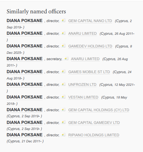 Если смотреть на связь через кипрского директора - DIANA POKSANE, то фирма Палия вполне может оставаться в числе миноритариев токсичного дивизиона, но предпочитает это скрывать.