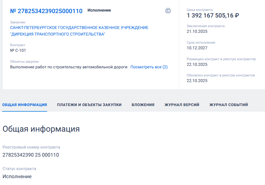 21 октября 2025 года Дирекция транспортного строительства Санкт-Петербурга подписала контракт с единственным участником соответствующего тендера - ООО «СК «Орион Плюс». Именно эта фирма получил 1,3 млрд рублей за строительство улицы Спирина с разработкой рабочей документации для нужд Санкт-Петербурга. Другим же компаниям бюджетные деньги не нужны. А может всё дело в том, что под требования тендера подходил лишь ограниченный круг участников?