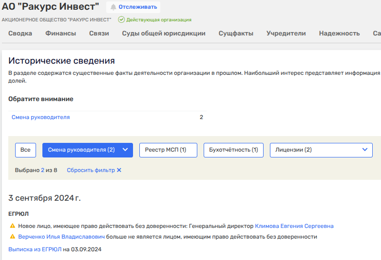 На сегодня директором АО «Ракурс Инвест» - Климова Евгения Сергеевна, у которой есть совместные активы с родственницей, Анной Климовой. Последняя в свою очередь была совладельцем ООО «Финансовая Технология Флиорм» (его правопреемник - вполне действующее ООО «Грань»). Партнером по фирме был Игорь Феньков - выходец из Ярославской области, а еще это партнер Владимира Шахова, по ООО СЭП Комплекс «Поиск-Ярославль».