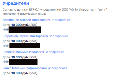 Шахов же имел общий бизнес как раз таки с экс-вице-губернатором Гейко - ООО «Ай Ти Инвестмент Групп», у которого был тот же вид деятельности, что у свежесляпанного фонда Николаевой.