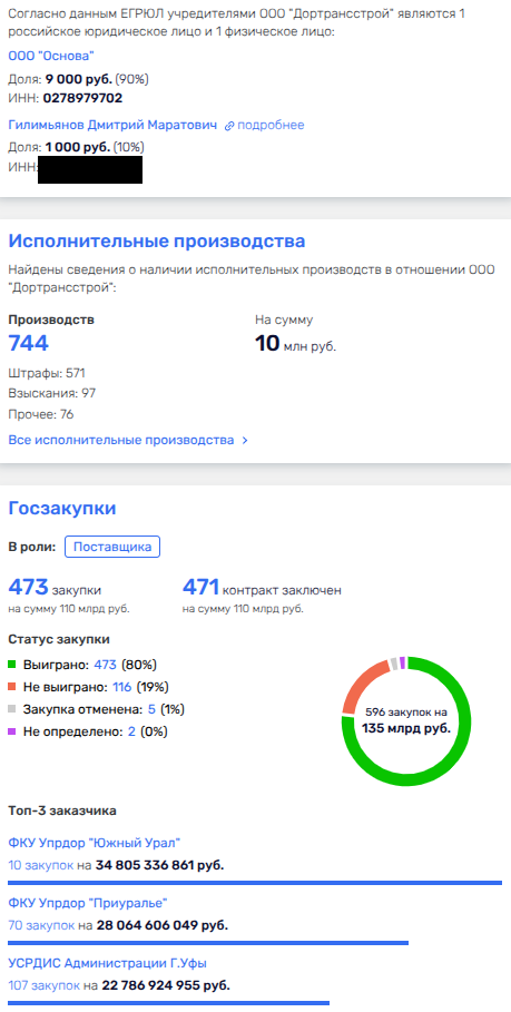 Директором и владельцем 10% в ООО «Дортрансстрой» является действующий депутат Курултая Башкирии Дмитрий Гилимьянов.