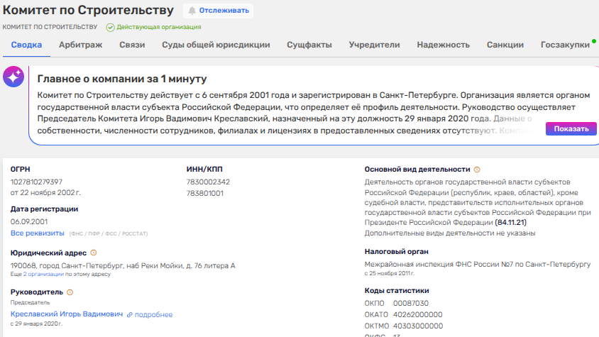 Комитет по строительству Петербурга возглавляет с 2020 года Игорь Креславский, который, что сам лично, что через членов семьи - мать Нину Креславскую и ее мужа Федора Туркина активно пилит госконтракты через оформленные на них фирмы. Например, его ООО «БАЛТИНВЕСТСТРОЙ», где глава комитета имеет 30% доли, наколотило на госконтрактах 61 млрд рублей.