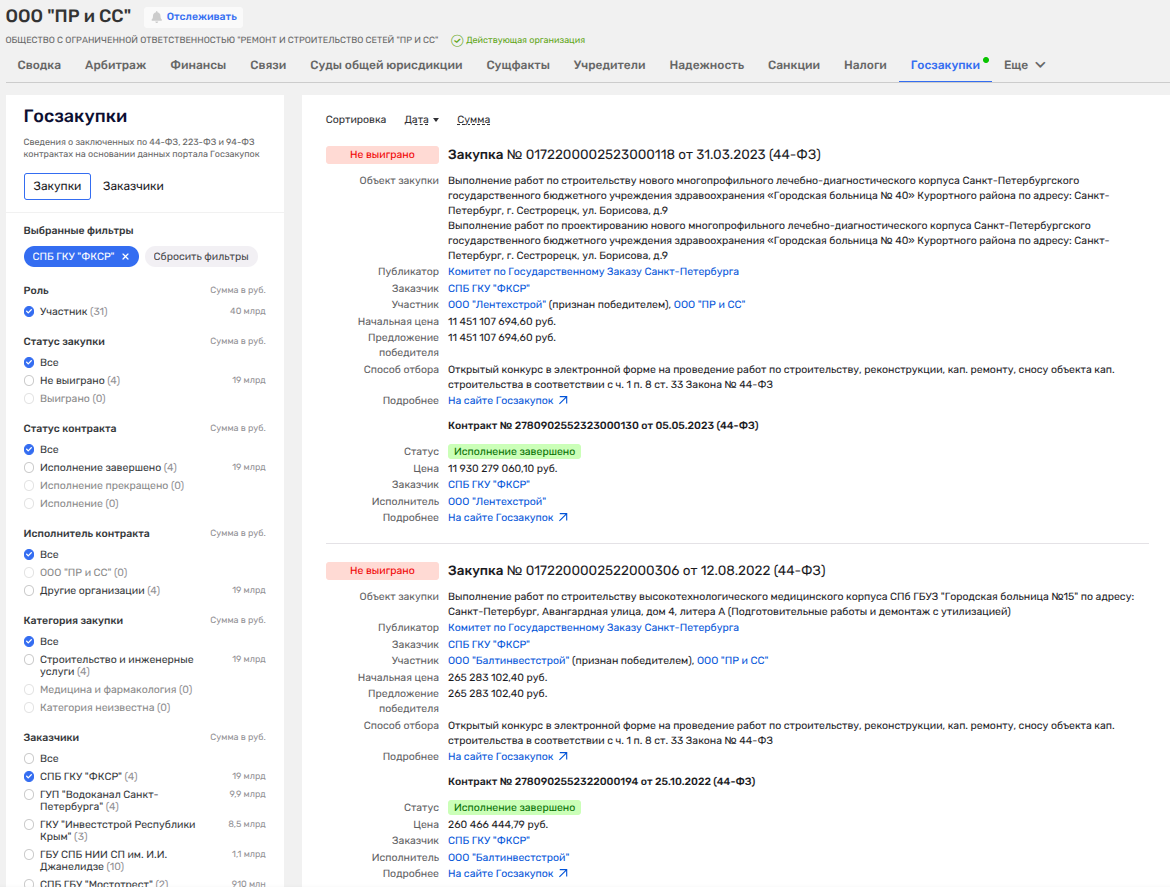 Так, в мае 2023 года фонд подписал контракт на 11,93 млрд рублей (на проектирование и строительствомногопрофильного лечебно-диагностического корпуса горбольницы № 40 Курортного района Санкт-Петербурга) с ООО «Лентехстрой» Анатолия Вебера. При этом конкуренцию изображало для него как раз таки ООО «ПР и СС» Шульжиков.