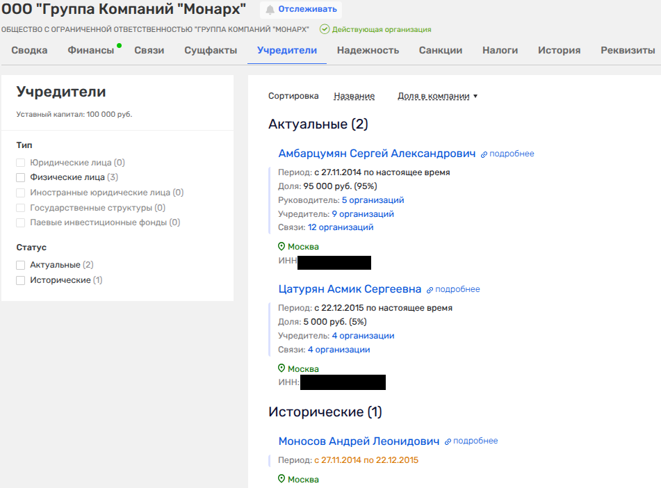 За компанией стоят интересы весьма примечательных персонажей. Так, покупатель, ставший контролирующим лицом, - ООО ГК «МонАрх», у которой также в штате один сотрудник, принадлежит Сергею Амбарцумяну. Последний - это бывший строительный чиновник: замглавы департамента градостроительной политики, развития и реконструкции города Москвы (2003-2007), а также бывший советник экс-руководителя стройкомплекса Москвы Владимира Ресина (2007-2011 годы), заделавшегося в депутаты Госдумы.