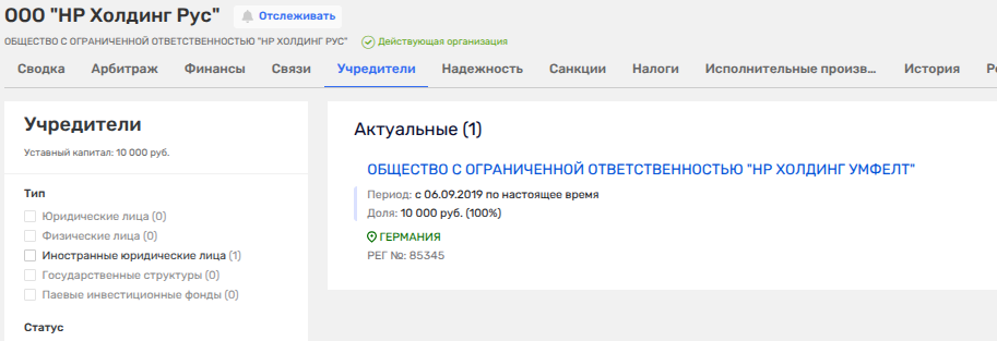 Более того, на сайте фирмы указано, что NR Holding Rus - дочерняя компания немецкого холдинга NR Holding Umwelt GmbH, образованная в 2019 году для реализации проектов в сфере обращения с ТКО и опасными отходами на территории России.