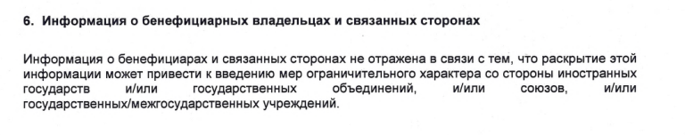 Свое нежелание раскрывать бенефициаров фирма прикрывает некими потенциальными санкциями.