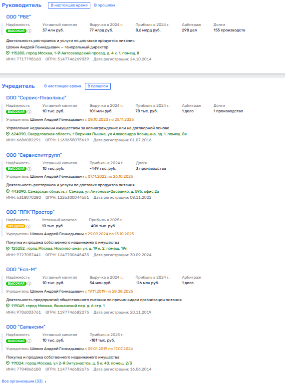 Итак, в 2024-2025 годы Шокин активно выходил из своих же компаний, передавая их сыну - Шокину Никите Андреевичу.