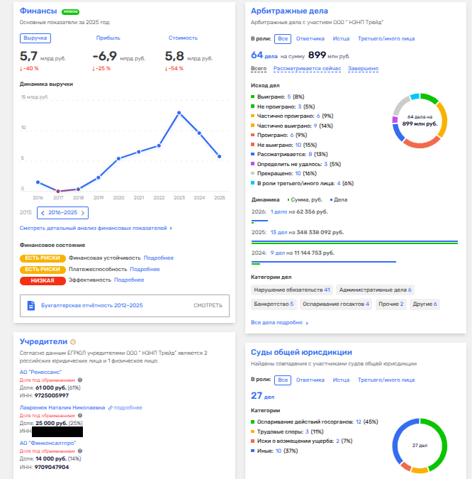 Нефтекомпания из Югры - ООО «НЗНП Трейд» подвела итоги работы за 2025 год и оказалась, что у бенефициаров этой кубышки, в числе которых доверенные лица бывшего украинского политика Медведчука, своя, своеобразная математика. При достаточно высокой выручке в 5,7 млрд рублей платить налог на прибыль в российский бюджет не с чего - ведь заявленный убыток 6,9 млрд рублей. Но наличие в прошлом среди владельцев целой пачки кипрских кубышек, нам как бы намекают, куда могли утечь капиталы.