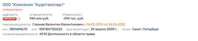 Так, например, в ООО «Компания «Аудитэксперт», прихлопнутое в 2022 году, вкачали в уставный капитал 944,8 млн рублей, которые канули в неизвестность.