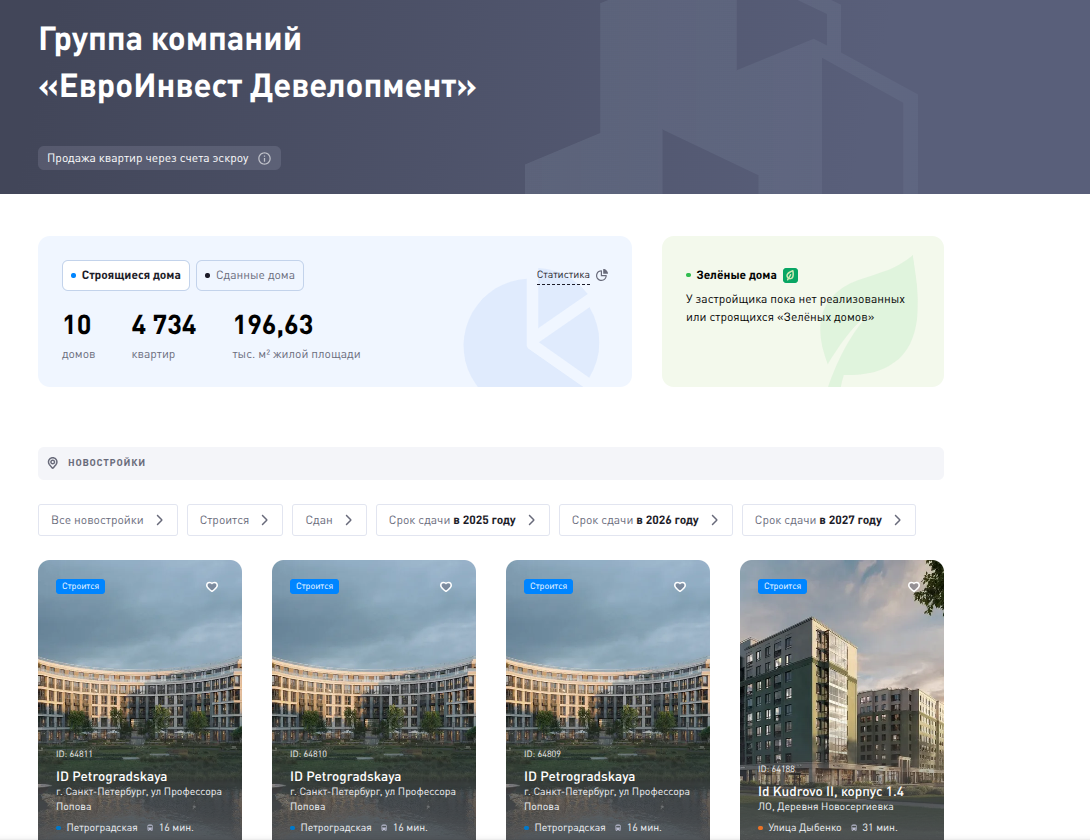3 сентября 2025 года ООО «Евроинвест Селект», которому принадлежат ООО «СЗ «Евроинвест Московский» (застройщик ID Moskovskiy), ООО «СЗ «Евроинвест Благодатная» (застройщик ID Park Pobedy) и ООО «СЗ «Евроинвест Озерки», отправили на ликвидацию.