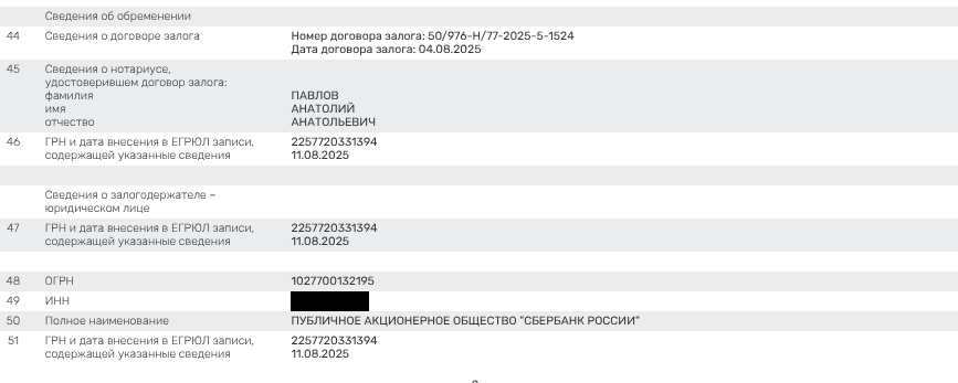 Компания «Вион» была создана в конце мая 2025 года с минимальным уставным капиталом 10 тыс. рублей, потому и удивительно, что на цепочку сделок, судя по наличию обременения, деньги дал Сбербанк.