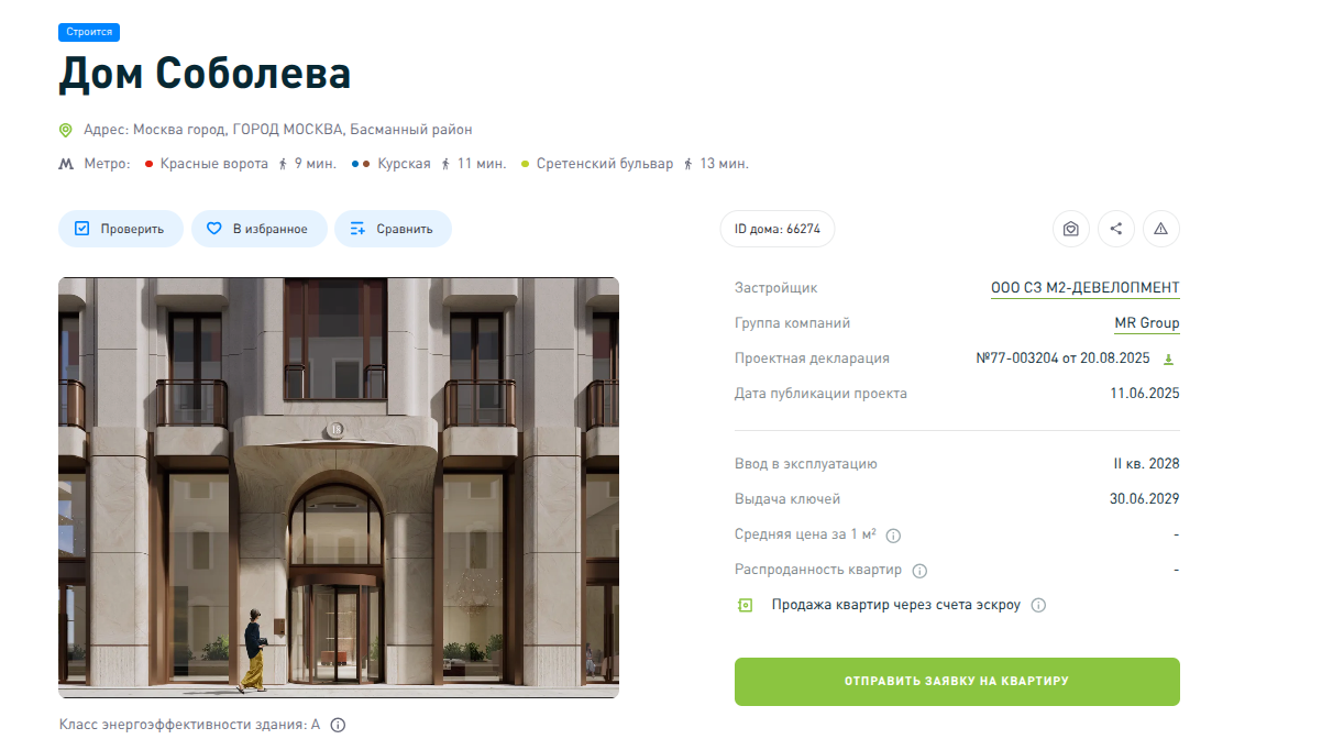 У проданных компаний в качестве актива имеется проект элитного жилого комплекса «Дом Соболева» на улице Машкова, стартовавший в июне 2025 года, то есть сделка была не копеечной отнюдь. Откуда же такое доверие у Грефа к по сути новорожденной фирме?