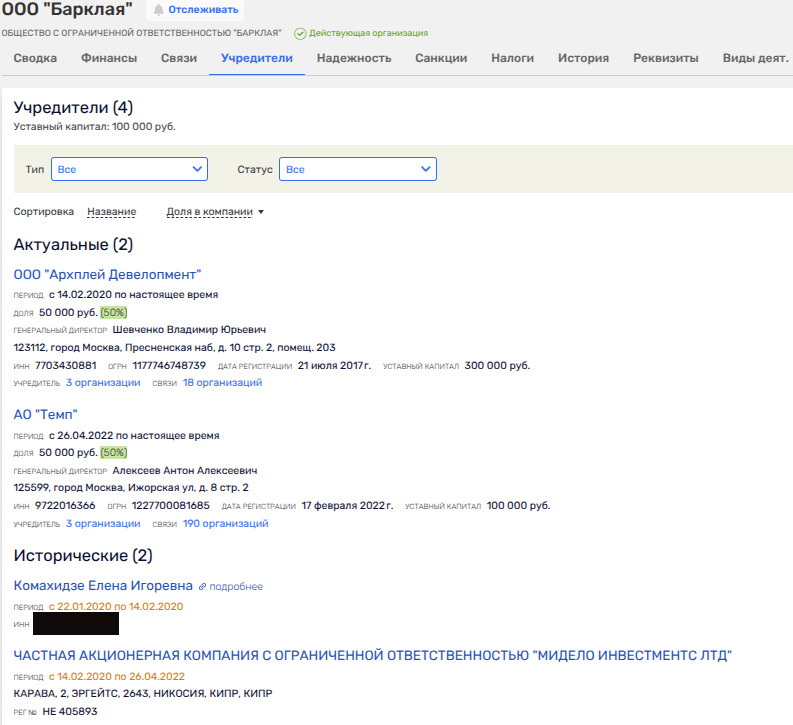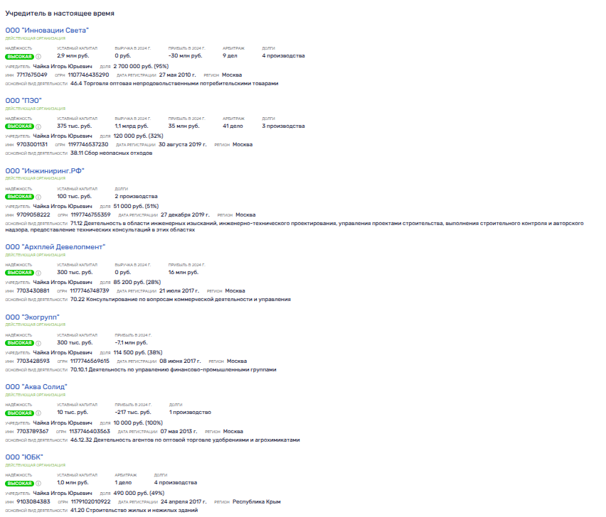 Но в этом смысле и сам Чайка отнюдь не белый и пушистый. Так, несколько лет партнёром фирмы Чайки по ООО «Барклая» выступало кипрское Мидело Инвестментс ЛТД. Прихлопнули эту кубышку лишь в январе 2025 года. А все эти годы через нее вполне успешно утекали капиталы.