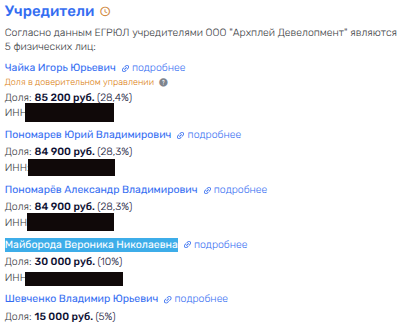 Более того, в ООО «Архплей Девелопмент» до сентября 2023 года долю имел Александр Додон, который выступает партнёром Чайки и в другой компании.