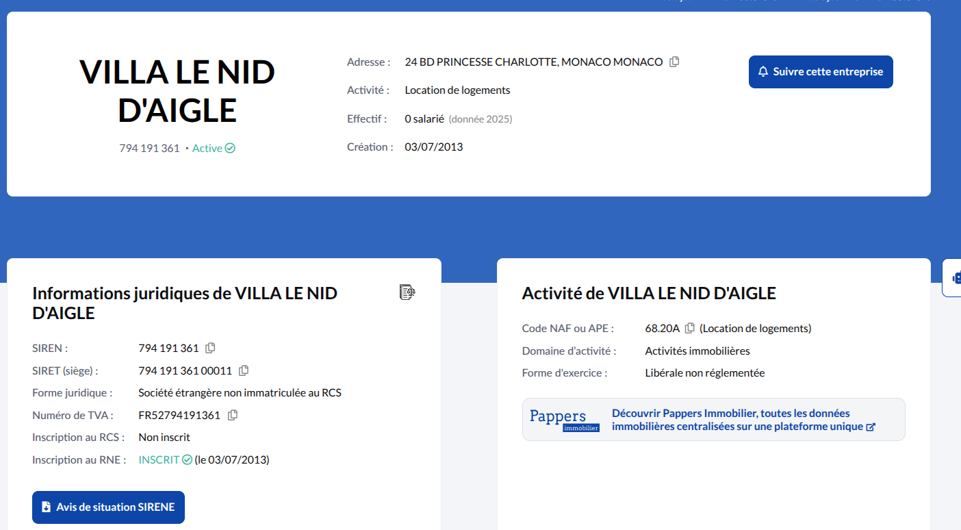 В открытых источниках удалось обнаружить фирму Villa le Nid d’aigle, зарегистрированную в Монако еще в 2013 году, но владельцев в ней скрывают. Между тем, le Nid d’aigle - именно так называется и мини-гостиница, расположенная в городе Мирлефт (Марокко).