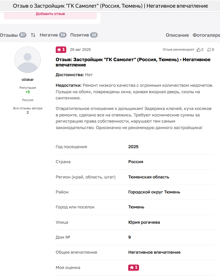 И это лишь малая толика претензий клиентов к домам Самолета.