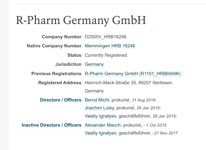 Кстати, директором R-Pharm Germany GmbH по-прежнему является Игнатьев.