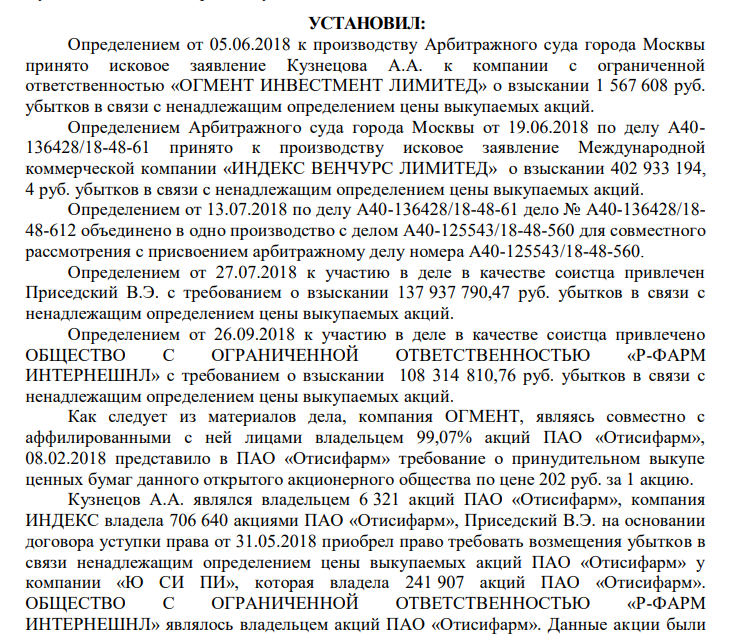 Впрочем, подобные черные пятна не лишают Репика доступа к кормушке, ведь этот игрок в покер тесно связан с олигархом Харитониным - другом вице-премьера Голиковой. Судя по базе арбитража, ООО «Р-фарм интернешнл» было вместе с харитонинским ОГМЕНТ ИНВЕСТМЕНТ ЛИМИТЕД акционером ПАО «Отисифарм».