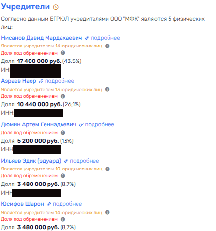 В том же ООО «МФК» в числе владельцев мы видим Наора Азраева, Эдика Ильяева и Шарона Юсифова, которые вместе с Ялчином Гасановым владеют ООО «Фуд Холод», что связано с известными рынками «Садовод» и «Фуд Сити».