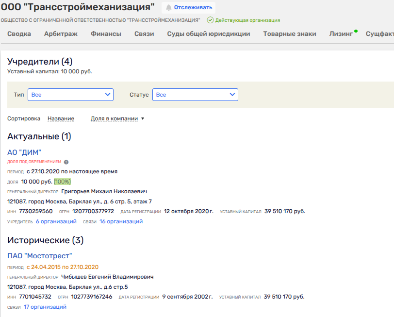 ООО «Трансстроймеханизация» - это актив АО «Дороги и мосты» (ДИМ), фирмы которая учреждена путём выделения из Мостотреста.