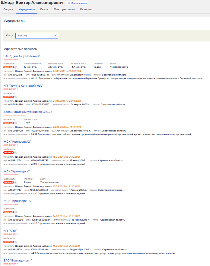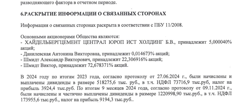 Виктор Шмидт на сегодня ликвидировал часть активов и вышел еще из части, но по-прежнему имеет контроль (на начало 2025 года) над АО «Волга Цемент» (72,6%). Как и его сын Александр.