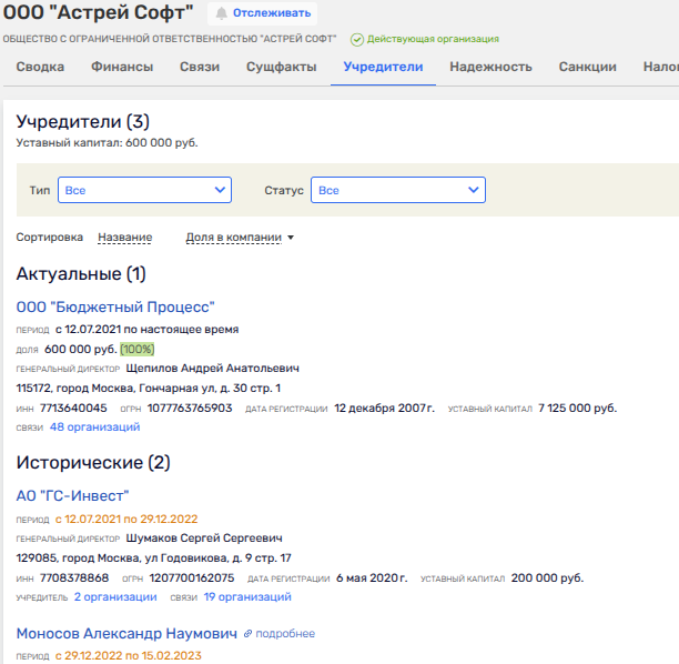 На сегодня бенефициаров ООО закольцевали (читай — хитро спрятали) и, сделав круг через ООО «Бюджетный процесс» мы выходим на всё тех же АО «РТ-Лабс» и само ООО «Астрей Софт». Хвосты в воду?