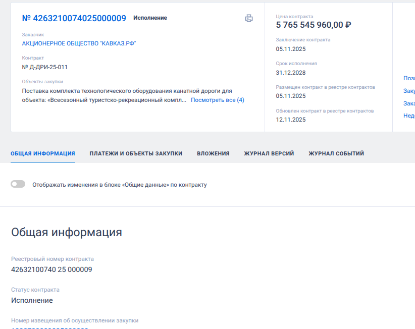 5 ноября 2025 года госкорпорация «Кавказ.РФ» подмахнула контракт на максималках единственному участнику.