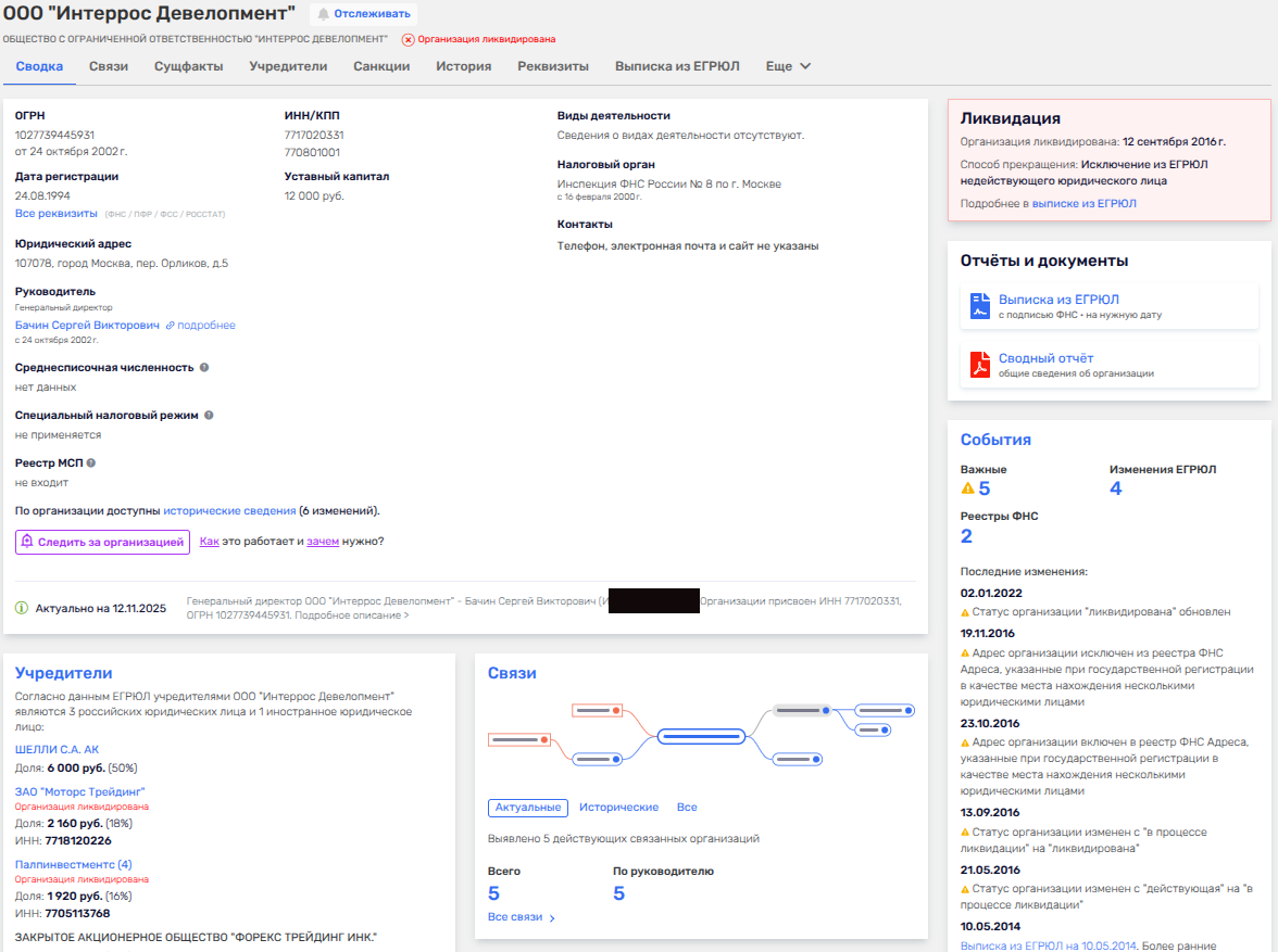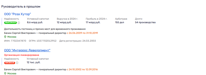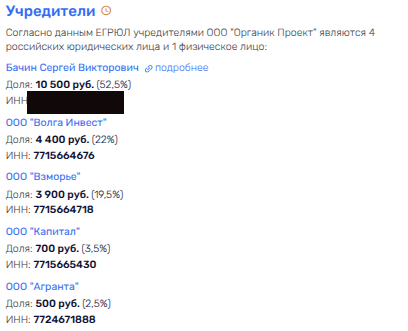 Тут стоит отметить, что свои уши Бачин прячет за целой цепочкой юрлиц, некоторые из которых закольцованы, являясь владельцами друг друга.