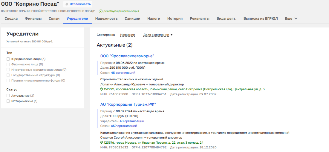Бачинским фирмам до сих пор принадлежит ООО «Ярославскоевзморье», кое владеет гостиничным «Коприно Посад», где дольку в 2024 году получила госкорпорация «Корпорация Туризм.РФ». А это намекает на то, что Бачину снова перепали бюджетно-налоговые плюшки, кои так лихо раздает эта госструктура.