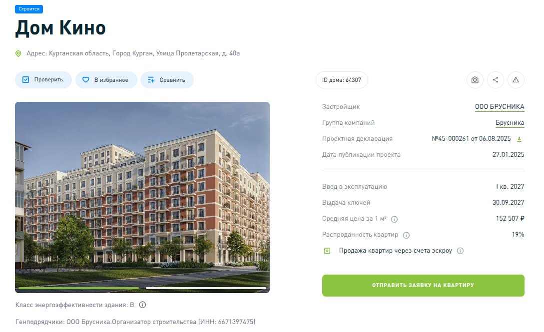 Проект анонсировали в январе 2025 года и относится он не к эконому, а к комфорт-классу .Сдать 16-этажку на 325 квартир планируется в первом квартале 2027 года. В доме уже распродано 19% квартир при цене квадрата - 152 507 рублей.