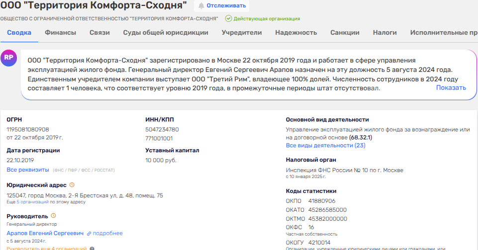 Помимо этого, Круковский приютил на руководящей должности в своем дивизионе Евгения Арапова - бывшего главу Оренбурга (2015-2018 гг), который был отправлен в отставку Оренбургским городским советом за нарушения антикоррупционного законодательства. Арапов на сегодня директор ряда фирм, связанных с Брусникой. Например, в ООО «Территория Комфорта-Сходня», которое принадлежит дивизиону Брусники.