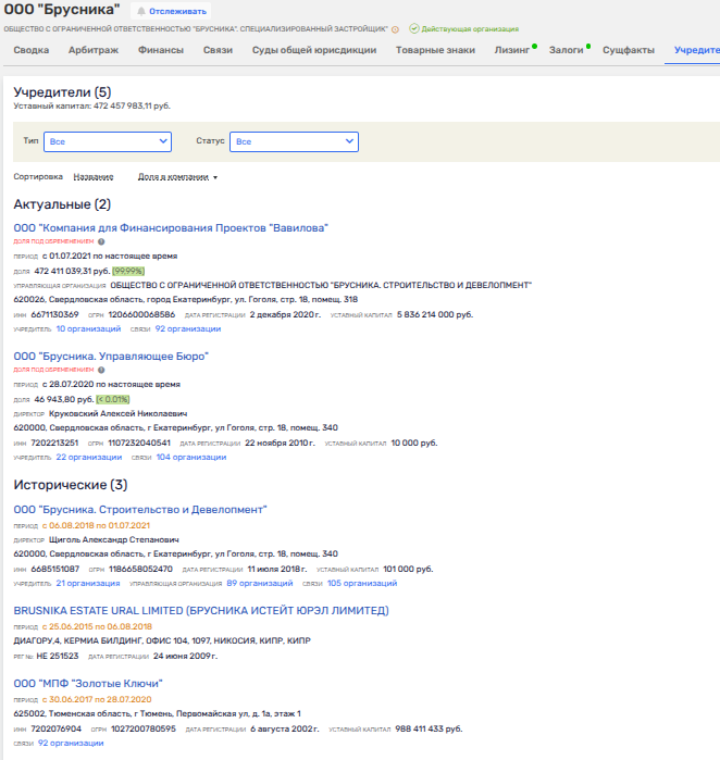 Компании Брусники запрятаны в мартешку из связанных юрлиц, но в конце цепочки владения стоит Алексей Круковский, который возглавляет сразу несколько фирм дивизиона и как директор.
