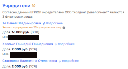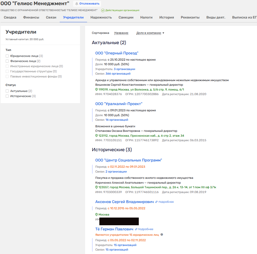 Вместе с Сергеем Зоновым по обоим купленным Тё фирмам мелькал некий Эдуард Осипян. Этот дуэт не раз мелькал в совместном бизнесе, что говорит об их тесном знакомстве. При этом компания Зонова, доставшаяся ему от Осипяна - ООО «Оперный проезд», еще в 2022 году была связана с сыном Павла Тё Германом. Они сообща владели ООО «Гелиос Менеджмент».