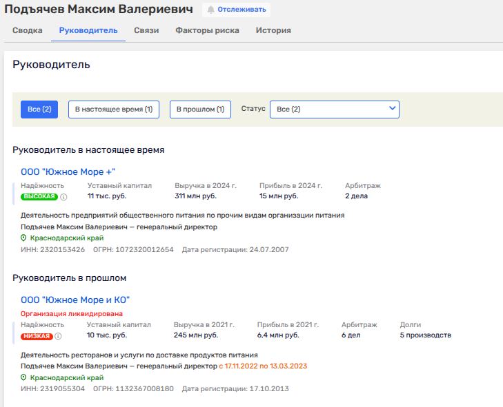 Более интересен в ООО «Южное море+» сегодняшний директор, который также был директором ООО «Южное море и КО», - Максим Подъячев.